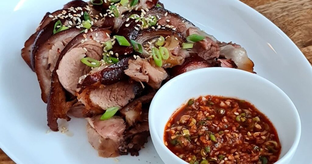- เคี่ยวด้วยไฟอ่อน – การเคี่ยวช้า ๆ จะช่วยให้รสชาติทุกอย่างกลมกลืนและเนื้อหมูนุ่มละมุน