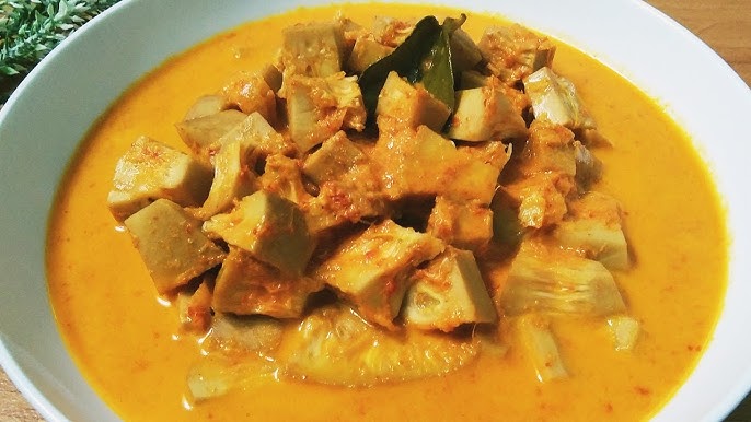 - ปรุงรสด้วยเกลือและน้ำตาล เคี่ยวจนขนุนดูดซึมเครื่องแกงและน้ำกะทิข้นขึ้น